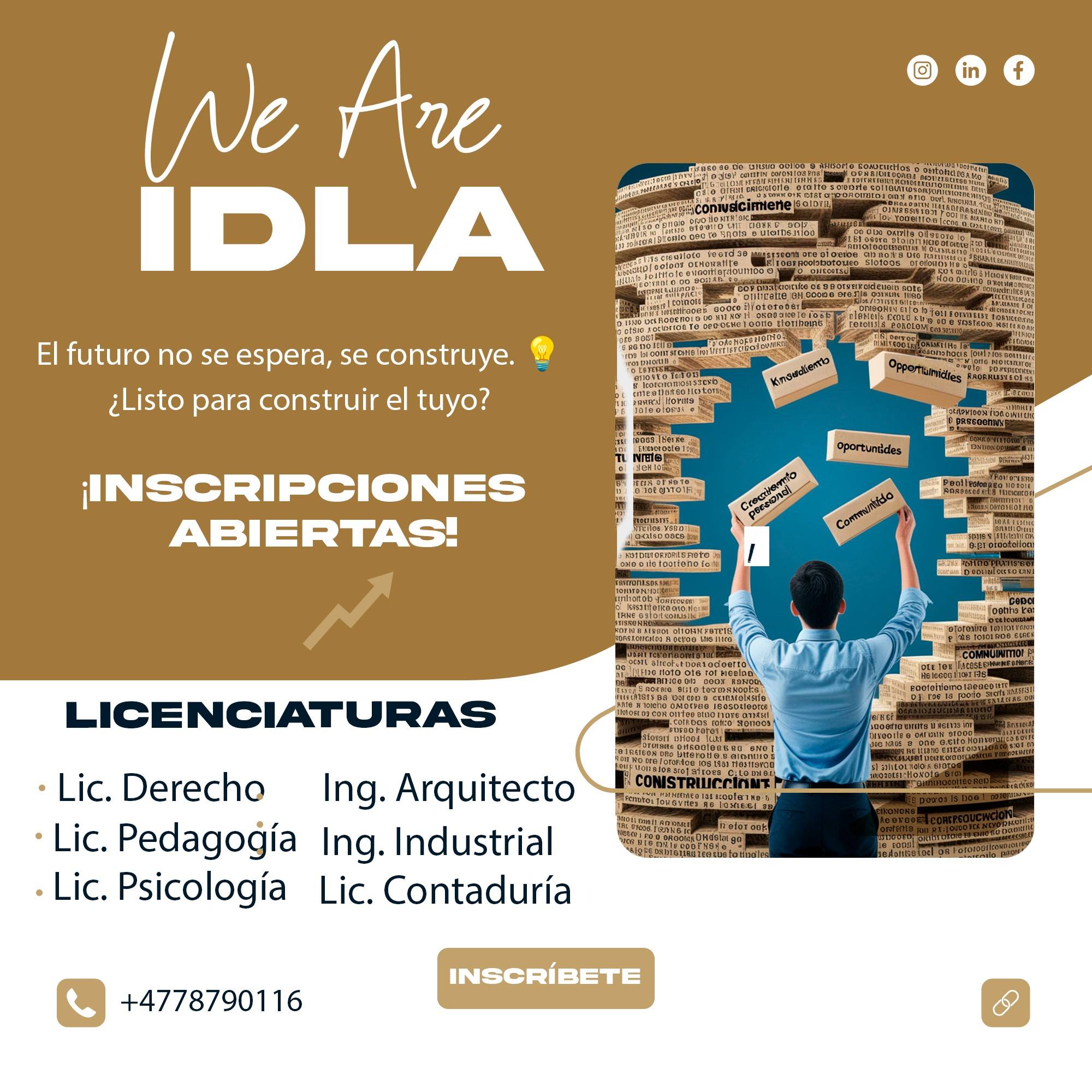 Consolidar el IDLA como una institución de Educación Superior líder en el desarrollo profesional y humano de todos los que forman parte de su comunidad educativa"
